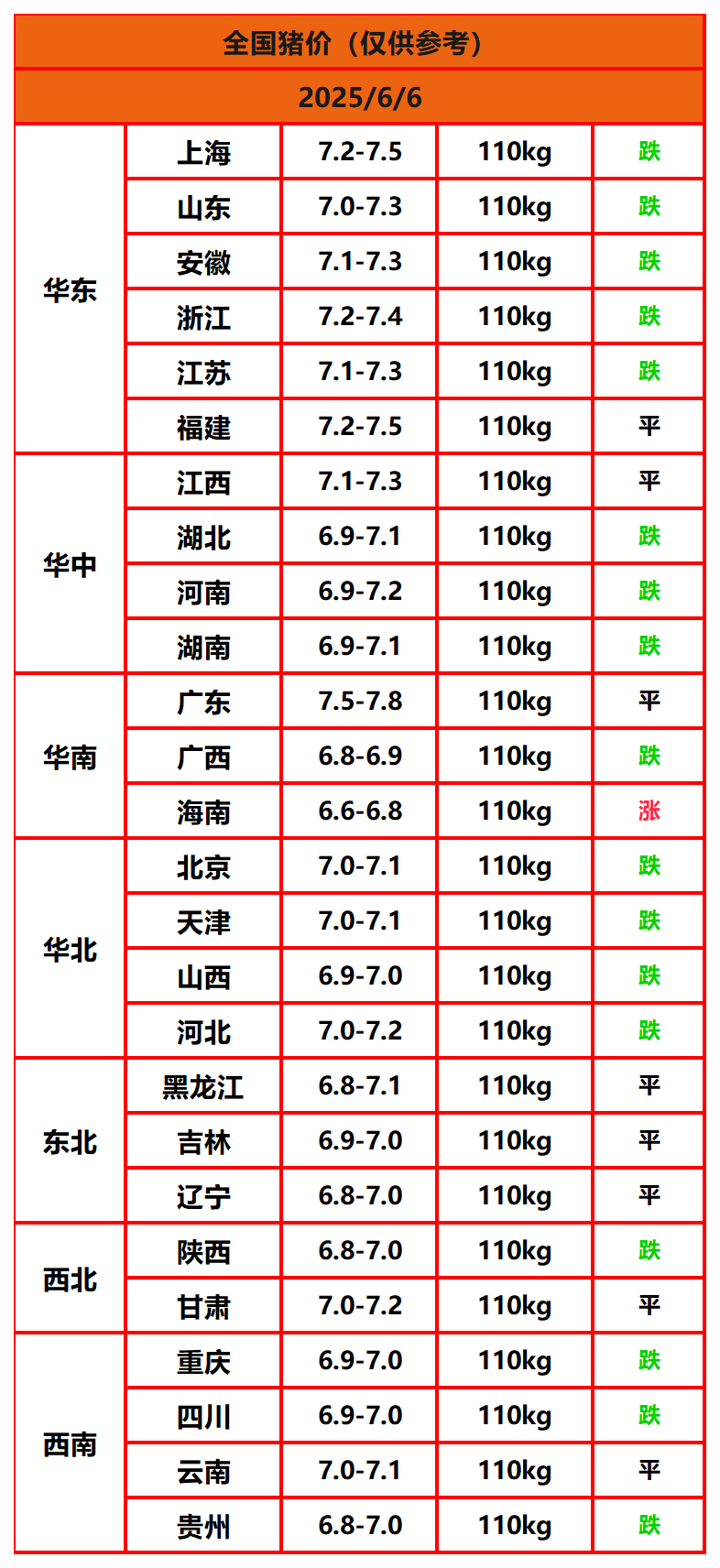 今日猪价 | 2025年6月6日全国猪价行情一览表!