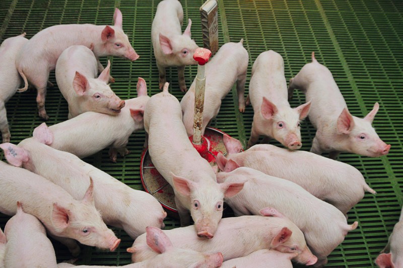 根据猪的大小和强弱进行分群饲养,有助于节省饲料并加速育肥。